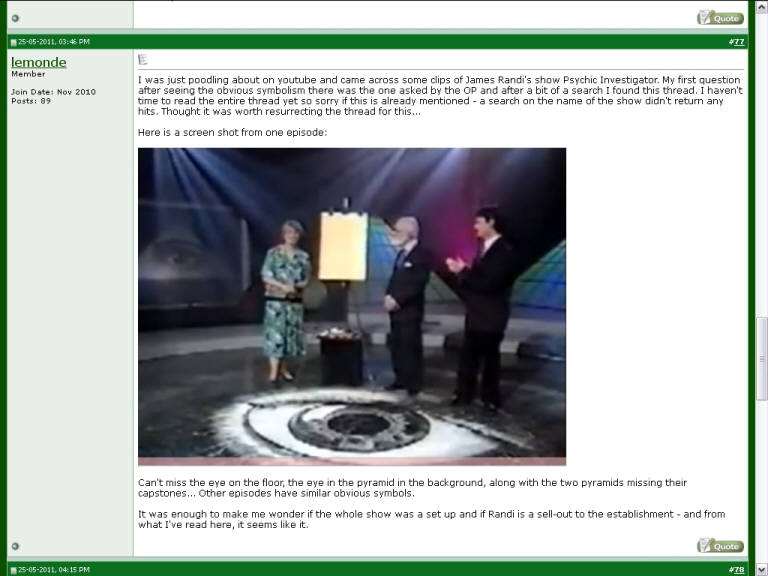 And in that James Randi anti psychic, anti wake up screenshot, he is standing on the most threatening image psychologists can devise,