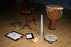 A pair of multicoured rainbow patterned luminous drum sticks appeared, used by Irene to drum very loudly on the hard floor, 1 meter from me in full view. Astonished I was. So loud it was heard by everybody in the room as discordant with the music- and coming from a different source- not the music speakers.